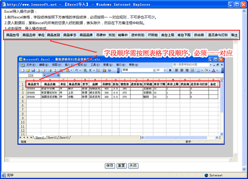 2.制作Excel商品資料模板,字段順序需按照下方的表格字段順序,必須一一對(duì)應(yīng),不可增減。