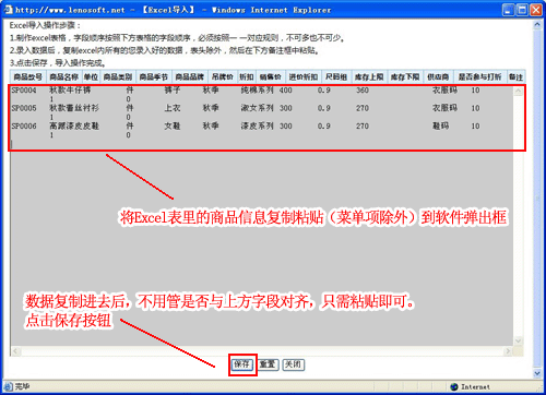 3.點(diǎn)擊【Excel導(dǎo)入】按鈕后,將Excel表里的商品信息復(fù)制粘貼(菜單項(xiàng)除外)到軟件彈出框: