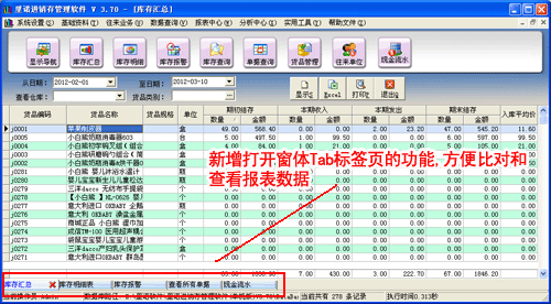 里諾進銷存單機版3.70增加Tab標簽功能及現金流水賬報表