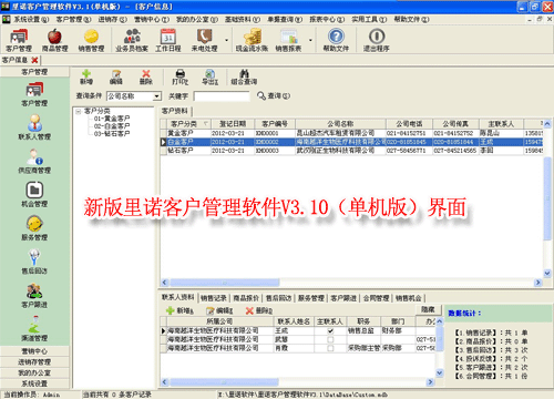 2012-3-20 里諾客戶(hù)管理軟件V3.10最新界面如下圖: