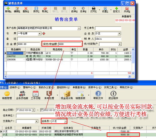 3.增加進(jìn)銷(xiāo)存模塊,對(duì)倉(cāng)庫(kù)管理、采購(gòu)收貨管理、采購(gòu)?fù)素浌芾、銷(xiāo)售出庫(kù)管理、銷(xiāo)售退貨管理、倉(cāng)庫(kù)調(diào)撥管理、庫(kù)存查詢(xún)等。讓客戶(hù)軟件更貼近采購(gòu)和銷(xiāo)售,便于跟單查詢(xún)。增加現(xiàn)金流水帳,可以按業(yè)務(wù)員實(shí)際回款情況統(tǒng)計(jì)業(yè)務(wù)員的業(yè)績(jī),方便進(jìn)行考核;