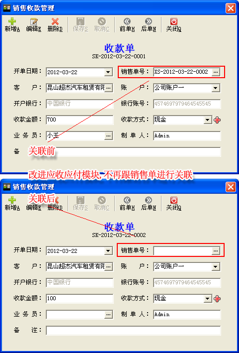 4.改進(jìn)應(yīng)收應(yīng)付模塊,不再跟銷(xiāo)售單進(jìn)行關(guān)聯(lián);