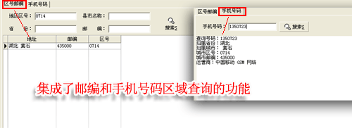 6.集成了郵編和手機(jī)號(hào)碼區(qū)域查詢(xún)的功能;