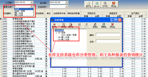 2.倉庫支持多級倉庫分類管理。利于各種報表的查詢統計。