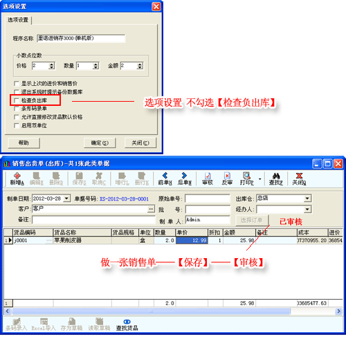 做一張銷售單。點擊審核,如下圖所示。已經可以負出庫了。