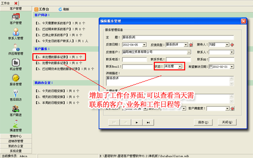 1、增加了工作臺界面,可以查看當天需聯系的客戶,業務和工作日程等;