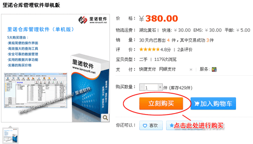 在里諾倉庫管理軟件單機版淘寶頁面中點擊“立即購買”