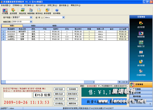 里諾服裝銷(xiāo)售管理軟件是一款針對(duì)小型服裝批發(fā)、服裝零售企業(yè)開(kāi)發(fā)的銷(xiāo)售軟件。軟件以其簡(jiǎn)潔、美觀的界面、人性化的銷(xiāo)售管理,集合POS銷(xiāo)售、進(jìn)貨管理、庫(kù)存管理、統(tǒng)計(jì)報(bào)表分析等功能,最大程度上為管理者解決了貨品品種、顏色、尺碼繁多不好管理、庫(kù)存難以掌控漏洞大、進(jìn)貨決策欠依據(jù)、經(jīng)營(yíng)不規(guī)范等問(wèn)題,軟件不需培訓(xùn)也能很快掌握軟件操作,上手極易。里諾服裝銷(xiāo)售軟件是商家制勝的必要之選。 點(diǎn)擊下圖立即下載里諾服裝銷(xiāo)售管理軟件最新版本V2.20 7.00M下載地址2