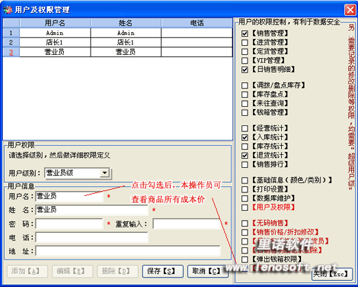 1 特有的完善的操作員權(quán)限管理:多用戶,分級(jí)授權(quán),互不干擾,輕松網(wǎng)絡(luò)辦公。可設(shè)置商品成本價(jià)可視權(quán)限。 2 進(jìn)貨管理貨品錄入可默認(rèn)鎖定相關(guān)屬性,方便同類(lèi)型服裝的錄入。 3 完善的POS銷(xiāo)售管理,進(jìn)貨管理,便捷的收銀,打印小票,滿額促銷(xiāo),VIP會(huì)員卡銷(xiāo)售。 4 方便明了的瀏覽商品,設(shè)置庫(kù)存報(bào)警數(shù)量以及顏色,快速地查找類(lèi)別。 5 快速的查看當(dāng)日銷(xiāo)售統(tǒng)計(jì),員工銷(xiāo)售業(yè)績(jī),使您對(duì)員工的工作情況了如指掌。 6 多樣的統(tǒng)計(jì)分析,營(yíng)業(yè)統(tǒng)計(jì),進(jìn)貨統(tǒng)計(jì),庫(kù)存統(tǒng)計(jì),退貨統(tǒng)計(jì),銷(xiāo)售統(tǒng)計(jì),使您對(duì)您的商品銷(xiāo)售情況了解清晰。更有負(fù)庫(kù)存顏色提醒功能。 7 商品資料數(shù)據(jù):輕松備份、恢復(fù)、壓縮數(shù)據(jù)。 8 基本信息設(shè)計(jì):用戶可以自定義商品類(lèi)別、商品顏色等多種信息,實(shí)用性更強(qiáng),使用更加靈活。