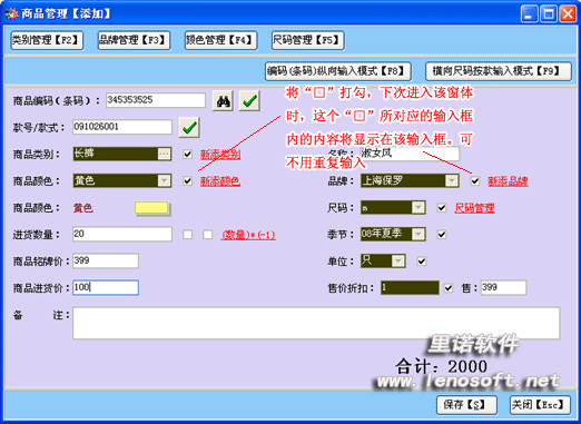 日常事務(wù): 進(jìn)貨管理:可進(jìn)行批次及備注管理,添加商品有“編碼(條碼)縱向輸入模式”和“橫向尺碼按款輸入模式”。 編碼(條碼)縱向輸入模式 橫向尺碼按款輸入模式 銷(xiāo)售管理:⑴ 銷(xiāo)售單基本數(shù)據(jù)填寫(xiě);⑵ 銷(xiāo)售信息表格顯示;⑶ 商品輸入與結(jié)算;⑷ 商品銷(xiāo)售、退還修改;⑸ 系統(tǒng)設(shè)置與價(jià)錢(qián)顯示。 另有無(wú)碼銷(xiāo)售模式,讓您輕松處理臨時(shí)銷(xiāo)售狀況。該功能主要適合于快速、未登記的商品銷(xiāo)售,您可以在【日銷(xiāo)售明細(xì)模塊】中補(bǔ)齊該商品編碼。 銷(xiāo)售訂單:可實(shí)現(xiàn)添加訂貨單、訂貨商品轉(zhuǎn)銷(xiāo)售、退還訂金處理、打印訂貨表等功能 VIP管理:可以查詢VIP客戶,查詢VIP客戶積分,添加、編輯和刪除VIP客戶,此窗體操作簡(jiǎn)單。 庫(kù)存管理:可實(shí)現(xiàn)庫(kù)存商品的詳細(xì)查詢、庫(kù)存的清理和修改。上部的網(wǎng)格可以實(shí)現(xiàn)對(duì)庫(kù)存商品的各種分類(lèi)查詢,方便的查閱您的商品庫(kù)存信息,使您可以有效的管理。下部的網(wǎng)格內(nèi)容即是商品庫(kù)存信息的明細(xì)記錄,右鍵點(diǎn)擊下部網(wǎng)格,可彈出各種修改命令,實(shí)現(xiàn)各種操作。 日銷(xiāo)售明細(xì):可查詢當(dāng)日、當(dāng)月或者根精確時(shí)間的銷(xiāo)售記錄。可對(duì)指定的銷(xiāo)售記錄實(shí)現(xiàn)補(bǔ)打小票、無(wú)碼處理、編輯備注和售貨員等信息。 其他事務(wù): 調(diào)撥/盤(pán)點(diǎn)/丟失 登記 盤(pán)點(diǎn)對(duì)照表錄入 庫(kù)存來(lái)往帳查詢:可以查詢某商品的詳細(xì)庫(kù)存、進(jìn)貨、銷(xiāo)售和庫(kù)存變動(dòng)記錄 錢(qián)箱管理: 款類(lèi)型為銀行的收益將不累加到錢(qián)箱收益中 統(tǒng)計(jì)分析: 經(jīng)營(yíng)/利潤(rùn)分析:方便地讓您第一時(shí)間知道您的利潤(rùn)毛利信息。 進(jìn)貨統(tǒng)計(jì)分析:可顯示庫(kù)存商品的分類(lèi)查詢,方便的知道數(shù)量和成本。 右鍵點(diǎn)擊窗體下方的網(wǎng)格將彈出快捷菜單,選擇修改商品信息,可以對(duì)指定的商品進(jìn)行修改。 退貨統(tǒng)計(jì)分析:根據(jù)退貨情況可讓您對(duì)市場(chǎng)和客戶需求進(jìn)一部分析,讓您下次進(jìn)貨有更好的選擇。 銷(xiāo)售排行分析:對(duì)商品銷(xiāo)售記錄的查詢,方便的知道熱銷(xiāo)商品,讓您對(duì)市場(chǎng)需求了如指掌。 基本信息: 商品瀏覽:可輕松的實(shí)現(xiàn)庫(kù)存的簡(jiǎn)單查詢,快捷方便。 類(lèi)別/顏色/尺碼設(shè)定 供應(yīng)商/品牌設(shè)定 票據(jù)打印開(kāi)啟及設(shè)定 數(shù)據(jù)庫(kù)備份/恢復(fù) 用戶及權(quán)限設(shè)定