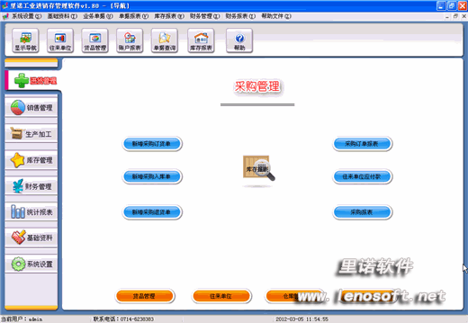 3.軟件支持訂貨管理、進貨管理、銷售管理、生產加工管理、庫存管理,使您在使用的同時能完全了解貨品的流動情況;