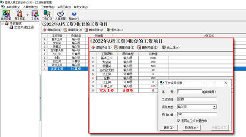 4 支持工資多套帳,自定義工資項(xiàng)目明細(xì)(最多可以設(shè)立50項(xiàng)工資項(xiàng)目)及其計(jì)算公式;