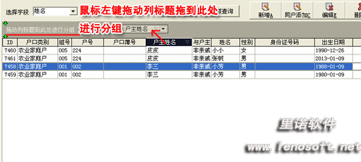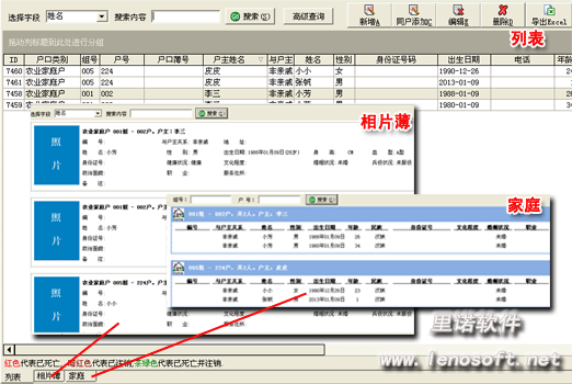 采用多種人口信息的顯示方法進行查看,可以選擇列表、相片薄和家庭的模式樣板進行查看。