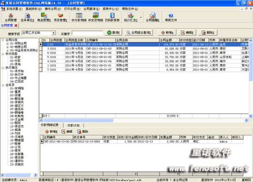 里諾合同管理軟件(SQL網(wǎng)絡(luò)版)是一款可以架構(gòu)在局域網(wǎng)內(nèi)多臺(tái)電腦數(shù)據(jù)共享操作使用的合同管理軟件。軟件集合同起草、合同簽訂、合同收付款計(jì)劃,合同收付,結(jié)算安排、執(zhí)行進(jìn)展、到實(shí)際結(jié)款以及對(duì)合同結(jié)款情況統(tǒng)計(jì)分析功能于一體的管理軟件。軟件界面簡(jiǎn)潔直觀,功能齊全,可方便的幫助你對(duì)供貨商和客戶(hù)的合同進(jìn)行管理,協(xié)助您完成應(yīng)收應(yīng)付款分析,自動(dòng)統(tǒng)計(jì)所有供貨商和客戶(hù)的應(yīng)收應(yīng)付款額,為您大大節(jié)省工作時(shí)間,提高工作效率。里諾合同管理軟件將是您明智的選擇,將會(huì)是你合同管理的好助手!