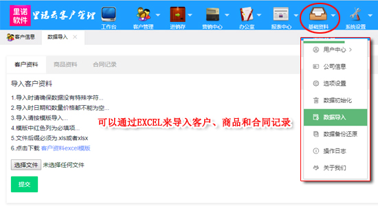 11.強大的數據導入功能,完善的EXCEL導入界面,針對必填項及選填項會加以文字說明。支持從Excel導入客戶和來往單位資料,減小您的期初工作量,各種數據也可以方便轉換為Excel數據格式