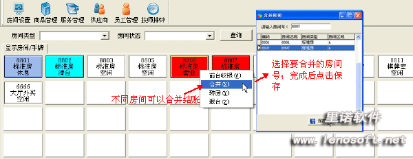 10.軟件允許不同房間/手牌的客戶合并房間/手牌一起結帳;同一房間/手牌的客戶可拆分單據,分開結帳。