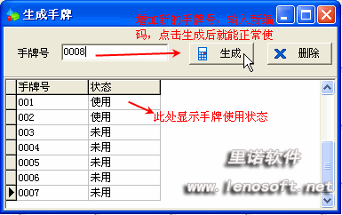 手牌是用來管理客人的消費單的,在此處就能生成新的手牌好。點擊生成按鈕后,手牌號就能正常使用。狀態欄顯示目前手牌使用狀態。